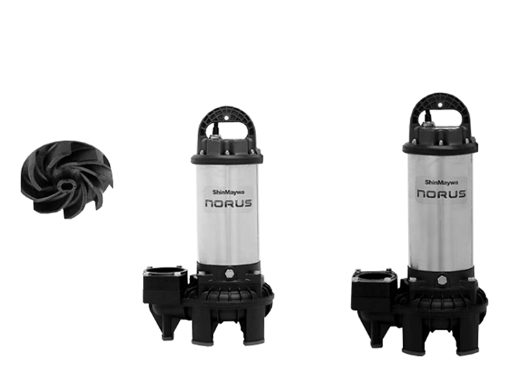 Nguyên lý hoạt động: Cánh bơm được thiết kế lõm vào, khi hoạt động sẽ tạo ra một dòng xoáy mạnh mẽ trong guồng bơm. Dòng xoáy này cuốn theo nước và các tạp chất rắn (bùn, rác, sợi...) đi qua bơm một cách dễ dàng mà không cần tiếp xúc trực tiếp với cánh bơm.