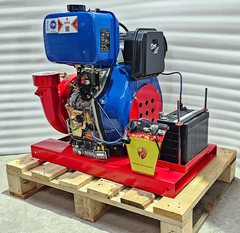 - Vai trò: Là máy bơm dự phòng, tự động khởi động khi hệ thống báo cháy được kích hoạt nhưng nguồn điện chính bị mất. Đây là thành phần đảm bảo an toàn sống còn cho công trình.